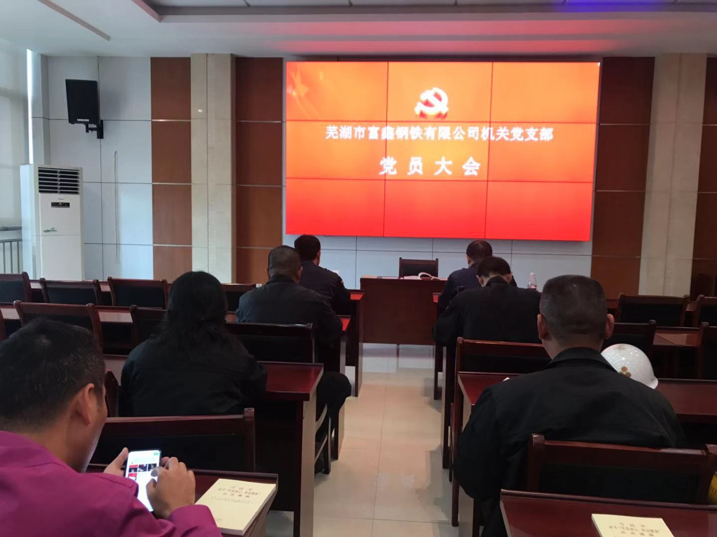 蕪湖市富鑫鋼鐵有限公司機(jī)關(guān)黨支部于10月10日召開(kāi)黨員大會(huì),傳達(dá)學(xué)習(xí)上級(jí)黨委“不忘初心,牢記使命”主題教育大會(huì)上的重要講話精神,深入學(xué)習(xí)貫徹公司黨委書(shū)記王文奇同志在公司“不忘初心牢記使命”主題教育工作會(huì)上的講話精神,圍繞如何在“爭(zhēng)當(dāng)領(lǐng)跑先鋒”行動(dòng)中擔(dān)當(dāng)作為、干事創(chuàng)業(yè)、樹(shù)立品牌,做到“守初心、擔(dān)使命,找差距、抓落實(shí)”開(kāi)展大會(huì)討論。機(jī)關(guān)黨支部書(shū)記陳玉同志主持會(huì)議。