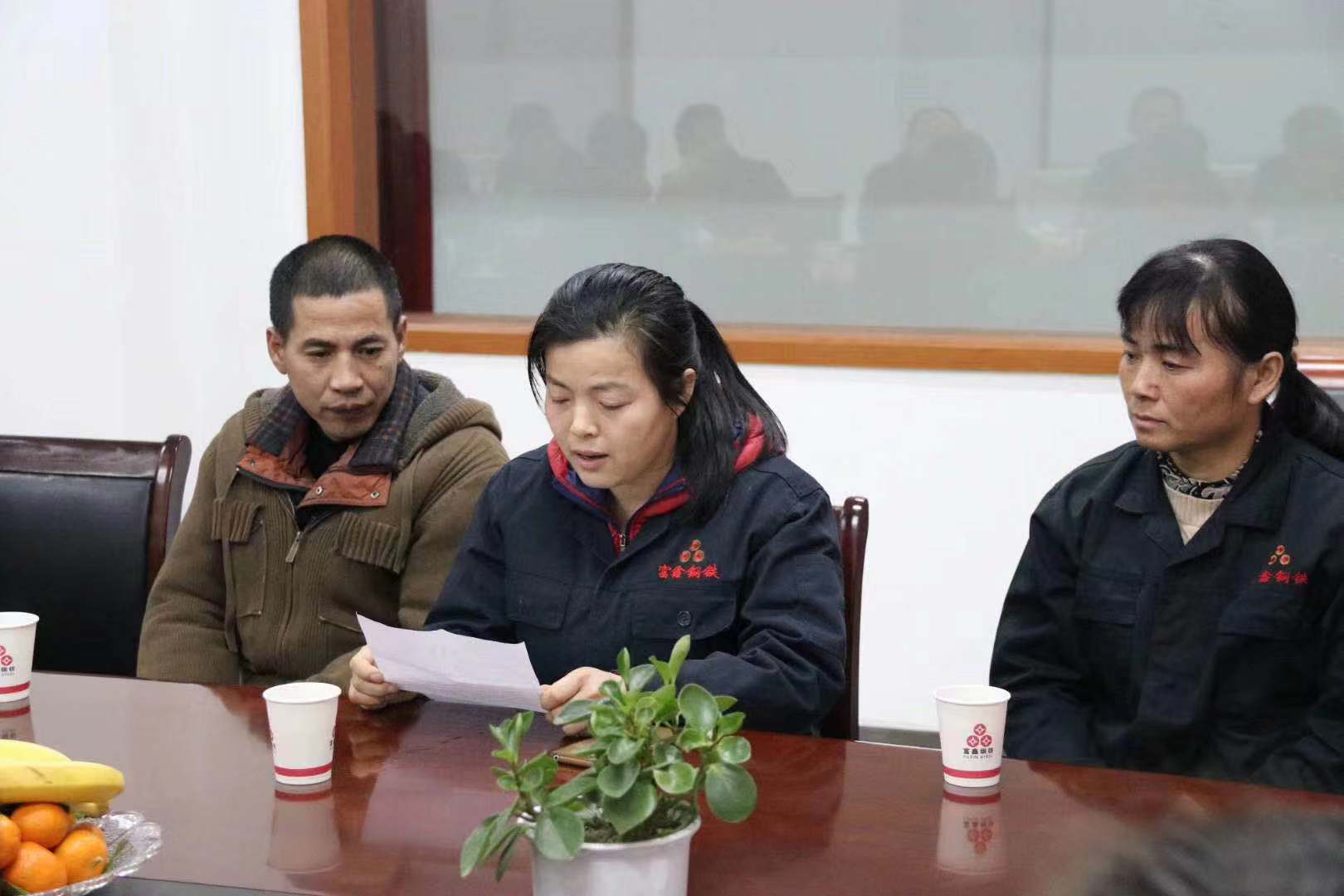 2020年春節(jié)將至,為讓困難職工度過一個溫暖祥和的春節(jié),1月7日上午,公司工會組織召開2019年度蕪湖市富鑫鋼鐵有限公司慰問困難職工座談會??h總工會黨組成員/副主席阮熙明、縣經(jīng)信局黨委委員/副局長戴元根、縣經(jīng)信局黨委委員/系統(tǒng)工會主席郝建 、縣總工會法工部副部長張陽、新港鎮(zhèn)總工會主席湯向東應(yīng)邀出席會議,公司10名困難職工代表參加會議。